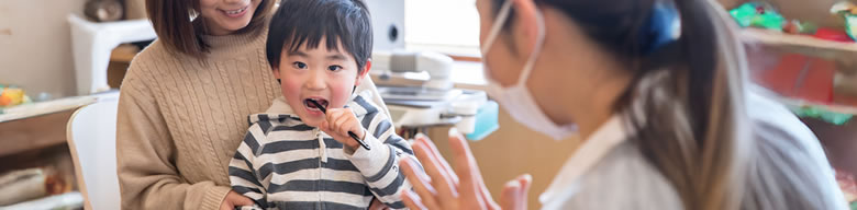 食べ物を食べる前と後の口の中の汚れの具合を知り、“磨くと気持ちいい”ということを体感して覚えます。